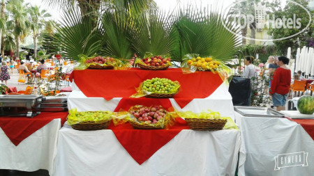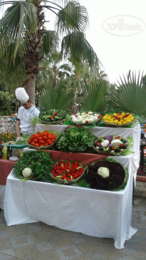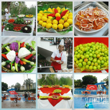 Еда: стандартный набор еды на турецком шведском столе, несколько вариантов мяса. Рыба типа дорадо была редко, за наш приезд только один раз, все остальное время из рыбы была, кажется, скумбрия...
