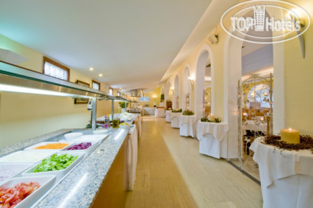 Питание по системе all inclusive включает в себя 3-х разовое питание, напитки в баре у бассейна с 11:00, печенье, мороженое, бутерброды на террасе ресторана. Воды в бутылках нет, только фильтрованная на разлив. Выбор блюд не богат (не Турция), но все очень вкусно. Из алкогольных напитков: пиво, вино белое и красное (столовые). Вина местные молодые, но не плохие. В ресторане на обед и ужин вино всегда было лучше, чем в баре на reception.