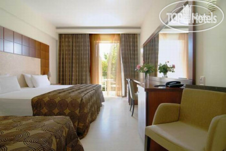 Мы отдыхали в этом отеле парой с 13 июля по 23 июля 2015 года. С первых минут впечатления были только положительные.С аэропорта до гостиницы ехали буквально 7 минут. По приезду нас встретил русскоговорящий администратор, что было очень приятно и неожиданно для Греции.Очень приветливая и веселая, рассказала все подробности и даже спрезентовала карту острова. Заселили нас в 13. 00 (хотя должны были в 14. 00). Когда попали в номер обалдели : номера шикарные для 4 звезд, поверьте есть с чем сравнивать, все со вкусом отделано, чистота и порядок. Полотенца меняли каждый день, постель через 2 дня, уборка помещений ежедневно. Пляж находится в 300 метрах по главной улице мимо уютных магазинчиков и кафе. Все чисто и аккуратно. Лежаки и зонтики платные (2 лежака и зонт-6 евро), но все чистое и удобное. Приятно удивило практически в каждом ресторане или прокате знание греками русского языка (в основном переселенцы). Питание в отеле очень разнообразное:выпечка домашняя, каждый день с утра и кашку и молочный супчик детям, а также пекут изредка тонкие блинчики с медом. Разнообразие натуральных мясных блюд, фруктов не много, но нам хватало более чем. Персонал очень вышкаленный и приветливый .Рекомендую всем этот отель, это настоящая твердая четверка. Отдохнули на все 100…